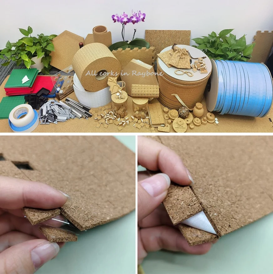 Raybone è la vera fabbrica che produce cuscinetti per spedizioni in sughero da 1/8" x 3/4" x 3/4" con supporto adesivo.