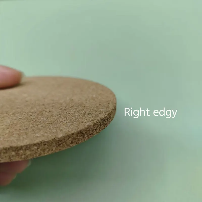 C'è anche un piccolo dettaglio per il bordo del sottobicchiere in sughero, normalmente due tipi di bordo, bordo rotondo e bordo destro. Il bordo rotondo ha più fasi di lavorazione perché deve essere lucidato, anche un costo più elevato, ma sembra più rifinito, facci sapere quale effetto desideri!