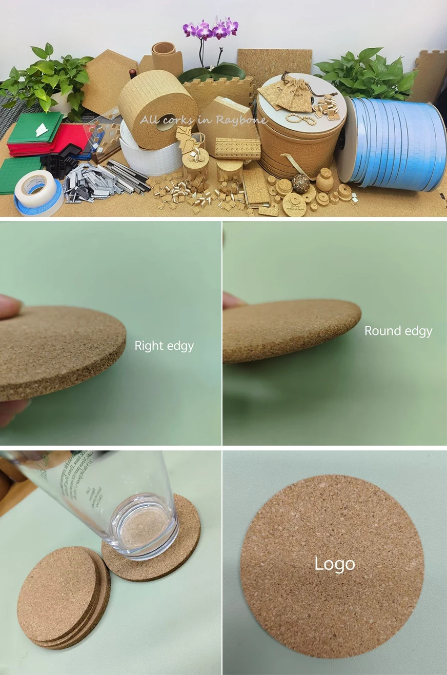Il sottobicchiere rotondo in sughero per bevande è popolare per essere prodotto a Raybone. Il sottobicchiere in sughero ha principalmente forme rotonde e quadrate, il rotondo di solito è più preferito dai nostri clienti, che ha una superficie liscia, una consistenza naturale e uno spazio vuoto libero per inserire motivi o logo belli e unici dei nostri clienti come loro insostituibile prodotto su misura.